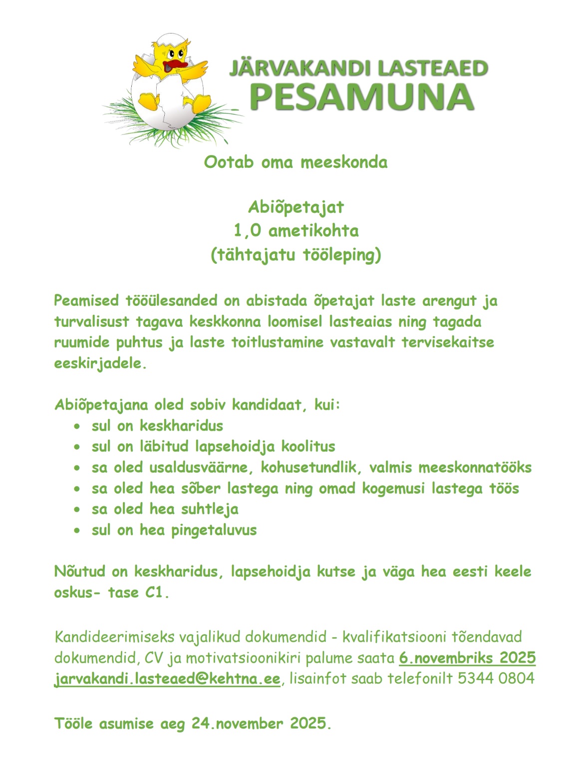 Lapse lasteaeda vastuvõtu ja väljaarvamise kord
